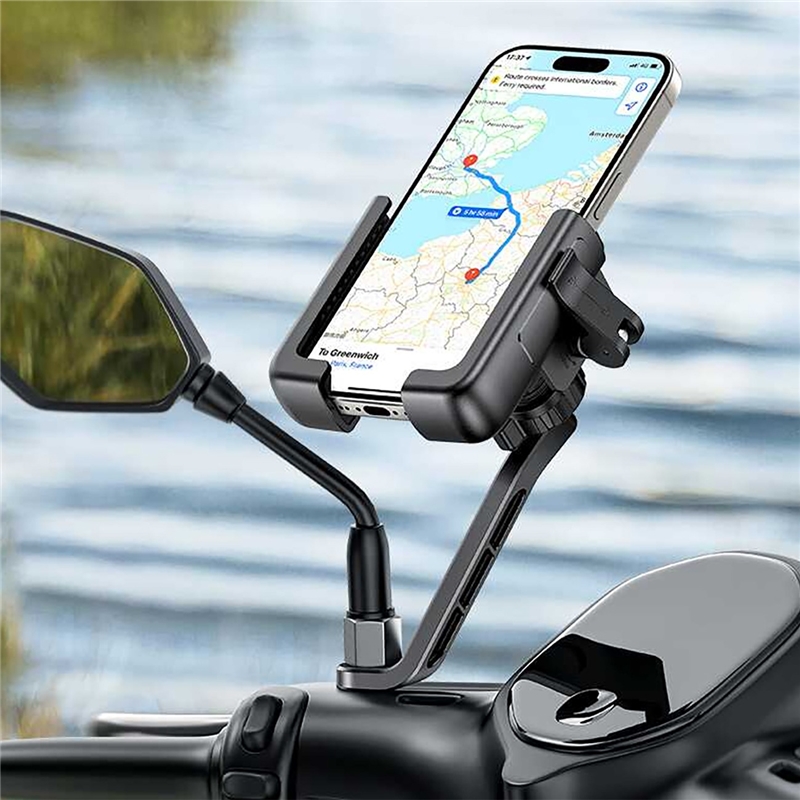 ⚙️ سیستم قفل مکانیکی ضدلغزش: چهار بازوی قفلشونده برای نگهداری محکم گوشی حتی در مسیرهای ناهموار.