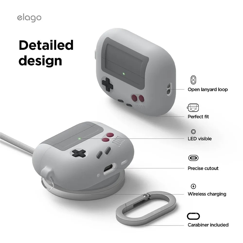 کاور کیس ایرپاد پرو 3 اپل elago AW5 Hang Case یک محافظ سیلیکونی با طراحی نوستالژیک و مهندسی‌شده است که به طور خاص برای کیس شارژ ایرپادهای پرو ۳ اپل طراحی شده است. نقطه تمایز اصلی آن، طراحی درون‌خانه‌ای (In-House Design) و عدم استفاده از قالب‌های آماده است که باعث فیت دقیق و محافظت بهینه می‌شود. طراحی آن با الهام از کنسول‌های بازی دستی کلاسیک مانند Game Boy انجام شده و دکمه‌ها و عملگرهای روی آن صرفاً تزئینی هستند. این محصول ترکیبی از نوستالژی، کیفیت ساخت کرهای و عملکرد قابل اعتماد است.