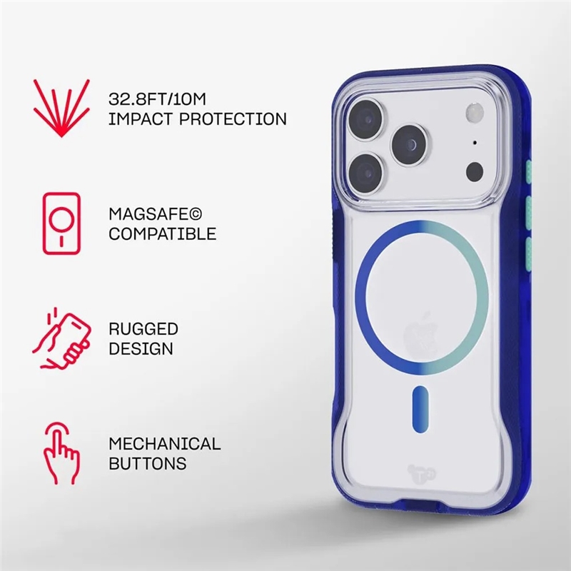قاب آیفون ۱۷ پرو مکس Tech21 Evo Pro یک محافظ از رده Rugged (مستحکم و خشن) است که ادعای ارائه بالاترین سطح محافظت آزمایشگاهشده Tech21 را دارد. هدف این محصول، ارائه “محافظت مادامالعمر در برابر سقوطهای مکرر” است. ویژگی متمایزکننده آن، عدد خیرهکننده محافظت ۱۰ متری (۳۲.۸ فوت) و ماده اختصاصی FlexShock است. این قاب با طراحی زمخت، درپوش پورت و دکمههای مکانیکی، برای کاربرانی ساخته شده که دستگاه خود را در سختترین شرایط به کار میبرند و به هیچچیز کمتر از امنیت کامل راضی نیستند.
