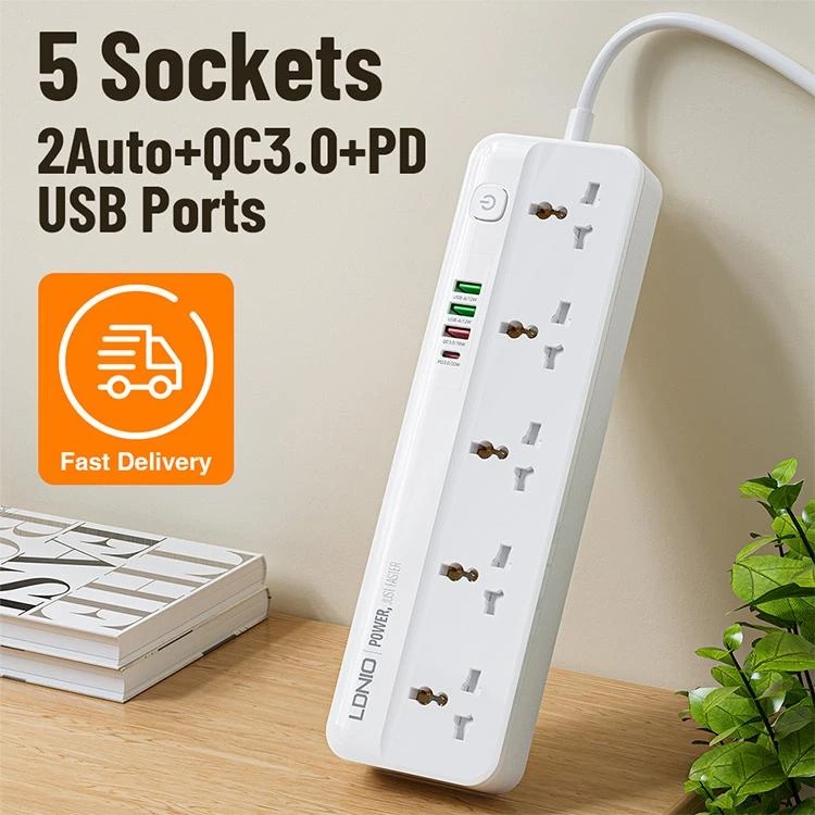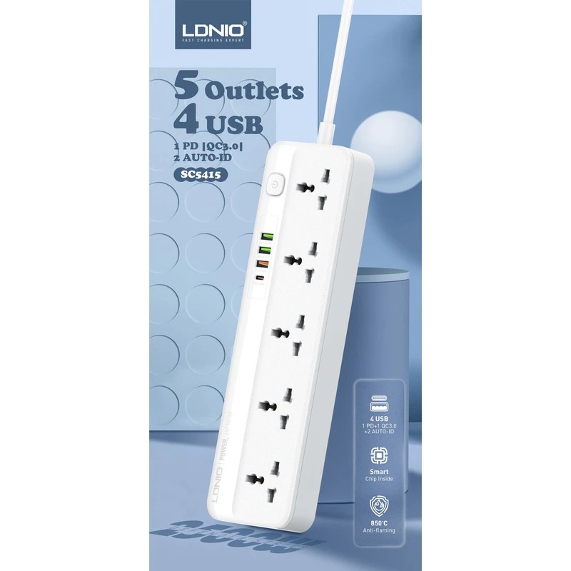 چندراهی برق الدینیو 9 پورت مدل SC5415 انتخابی مناسب برای افرادی است که نیاز به استفاده از چندین دستگاه به صورت همزمان دارند. این پاور استریپ دارای ۵ پریز AC است که امکان اتصال و استفاده از چندین وسیله برقی را به راحتی فراهم می کند.