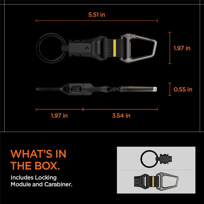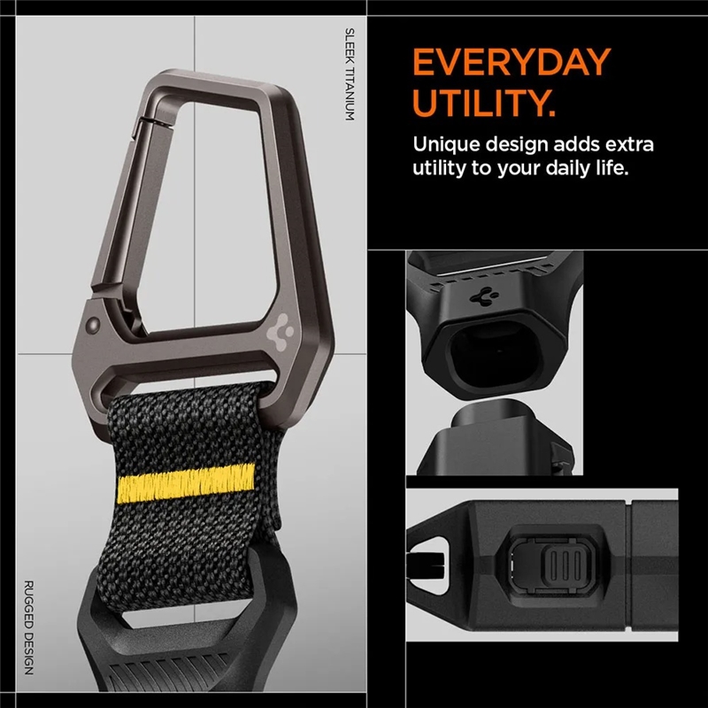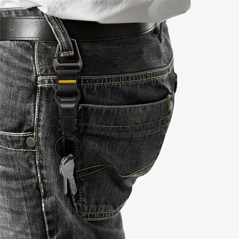 جاکلیدی Spigen Carabiner از آلیاژ فلزی مقاوم و متریال باکیفیت ساخته شده است که در برابر فشار، ضربه، سایش و استفاده طولانی‌مدت مقاومت بالایی دارد. این ساختار مقاوم باعث می‌شود جاکلیدی در طول زمان کیفیت و عملکرد خود را حفظ کند.