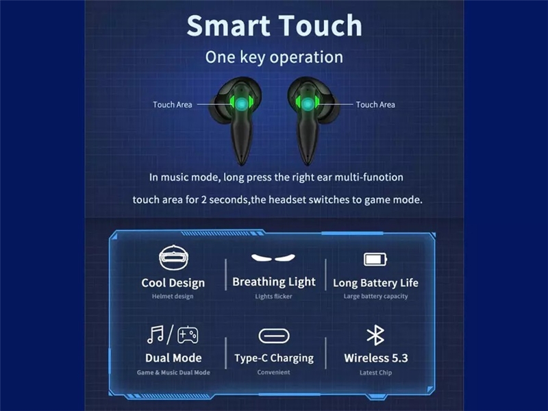 از حالتهای مود گیم و مود بازی برخوردار است و با لمس دو ثانیهای گوشی سمت راست در حالت موزیک به سرعت مود گیمینگ را فعال میکند تا صدا با تاخیر بسیار کمی به گوش برسد.