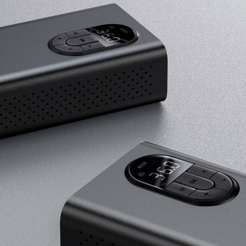 کمپرسور باد لاستیک که شرکت بیسوس طراحی کرده است، یک دستگاه به شکل مکعب مستطیل بوده کهدر ابعادی به اندازه 140.2x42.6x78.2 میلیمتر ساخته و بازار ارائه شده است.همانطور که از ابعاد آن مشخص است، این دستگاه بسیار کوچک است و فضای کمی را اشغال میکند.برای تصور اندازه آن اینگونه در نظر بگیرید که کمپرسور باد بیسوس از یک تلفن همراه کمی بزرگتر بوده و اندازه یک پاوربانک است.بدنه این محصول از جنس آلیاژ فلزات مرغوب و باکیفیت است که جلوه زیبایی به آن میدهد.روی بدنه دستگاه یک چراغ LED قرار داده شده که به شما کمک میکند حتی در نبود نور کافی در شب هم بتوانید چرخ اتومبیل خود را تنظیم باد کنید.جالب است بدانید که این چراغ میتواند پیام خطر و کمک یا همان SOS را نیز با خاموش و روشن شدن نشان دهد.دکمههایی که روی این محصول قرار دارد به شما کمک میکند تا با صفحهنمایش کوچک LED فرمانهای دلخواه را به کمپرسور بدهید.این دکمهها وظیفه روشن و خاموشکردن دستگاه، روشن و خاموشکردن لامپ و فرستان پیام کمک، تنظیم دستی باد و فشار هر چرخ و… را بر عهده دارند.باتری بهکاررفته در این دستگاه بسیار قدرتمند و ظرفیت اسمی آن 2500 میلیآمپر است.این مقدار شما را قادر میکند تا 9 چرخ کاملاً خالی را پر از باد کنید.باتری کمپرسور باید 4 تا 5 ساعت به برق متصل باشد تا دوباره کامل شارژ شود.برای رعایت ایمنی و جلوگیری از داغ شدن بیش از حد دستگاه و افزایش طول عمر آن بعد از هر 10 دقیقه کارکردن، به کمپرسور 5 دقیقهیا بیشتر حتی استراحت بدهید.صبر کنید تا دمای دستگاه به حد مطلوب برسد و دوباره کار خود را ادامه دهید.بدنه و همه قطعات داخلی کمپرسور بیسوس فلزی هستند. این دستگاه بسیار کم سروصدا است.درون قلب کمپرسور بیسوس یک تراشه هوشمند قرار دارد که اتوماتیک فشار داخل هر چرخ را اندازه میگیرد.این تراشه خودکار میتواند چرخ را باد کرده و زمانی که تشخیص دهد فشار مناسب است خودبهخود متوقف شود.همچنین دو خروجی دو طرف بدنه تعبیه شده تا گرمای ناشی از کارکردن زودتر خارج شود.