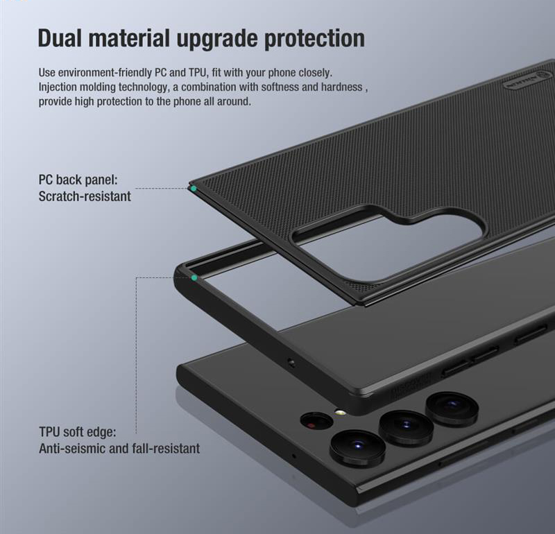 کاور «نیلکین» مدل «Super Frosted Shield Pro» برای گوشی موبایل سامسونگ Galaxy S23 Ultra طراحی و تولید شده است. این محصول با استفاده از پلیکربنات ساخته شده و مقاوم است. سطح کاور بهصورتی طراحی شده که در برابر لغزش و سایش مقاومت دارد. بنابراین در زمان استفاده از گوشی موبایل احتمال لیز خوردن و افتادن دستگاه از دستتان به حداقل خواهد رسید؛ همچنین لایهی رویی این محصول اثرانگشت کمی به خود جذب کرده و مدت زمان بیشتری میتوان آن را تمیز نگه داشت.محل قرارگیری درگاهها در این محصول بهطور دقیق اندازهگیری شدهاند تا دسترسی و استفاده از آنها بدون مانع انجام شود. این کاورتمامی سطوح گوشی موبایل را میپوشاند و از دستگاه شما در برابر خط و خش محافظت میکند. این کاور لبههای باریکی دارد و از نمای جلو، تغییر چندانی در ظاهر گوشی ایجاد نمیکند؛ همچنین وزن آن کم است تا بدون نگرانی بهخاطر تغییر وزن و ابعاد گوشیتان از آن استفاده کنید؛. این قاب پشت و لبه های گوشی سامسونگ اس 23 الترا را پوشش می دهد و از بروز مشکلاتی قبیل خط و خش و ضربه جلوگیری می کند. کاوری که شیار های موربی دارد که باعث می شود گوشی از دست و از روی سطح به هیچ عنوان لیز نخورد.بنابراین اگر به دنبال محافظی با کیفیت ساختاری بالا هستید قاب نیلکین Samsung Galaxy S23 Ultra مدل Frosted Shield Pro را به شما پیشنهاد می کنیم،نصب و جداسازی این کاور از گوشی سامسونگ اس 23 الترا بسیار ساده و راحت است و محدودیتی در دسترسی به پورت ها و لنز دوربین ایجاد نمی کند. روی دکمه ها برای محافظت بهتر پوشیده شده اند.قسمت پورت ها و رابط های کاربری توسط برش های دقیقی باز است تا کاربر بتواند به راحتی از آن ها استفاده کند،همچنین قاب Samsung Galaxy S23Ultra در قسمت دوربین پشت ضخامتی بیشتر از جاهای دیگر دارد که این موضوع باعث می شود با قرار دادن گوشی سامسونگ اس 23 الترا دوربین سطح تماس کم تری با سطوح مختلف داشته و از این رو کم تر در معرض خط و خش و ضربه دیدن قرار می گیرد.