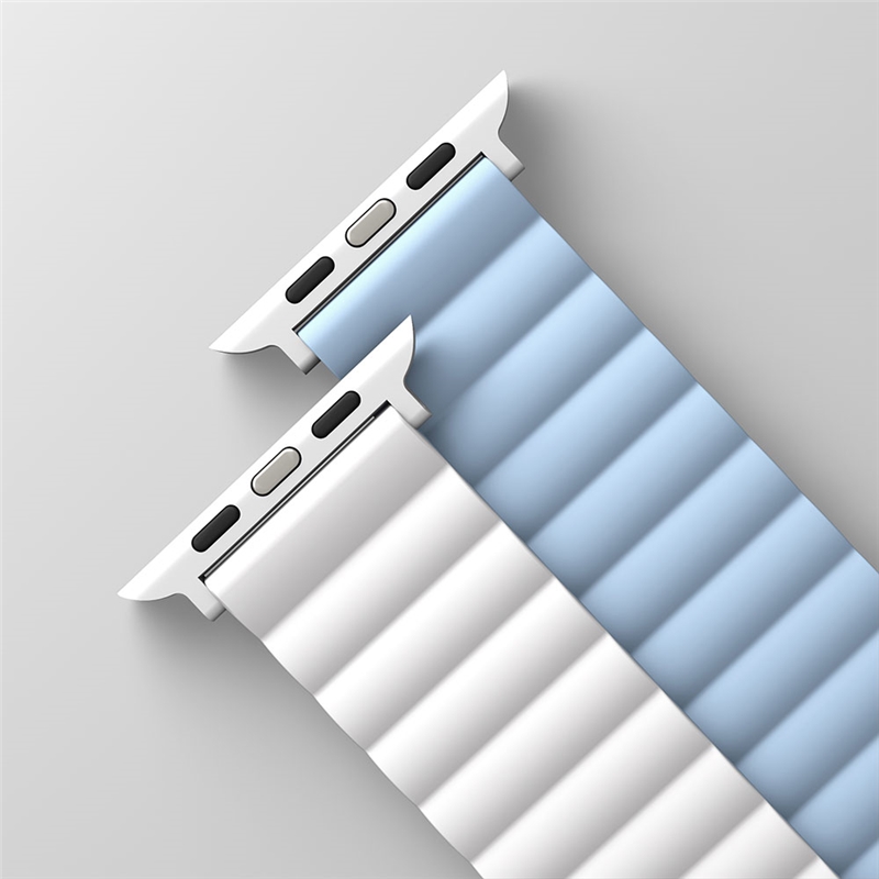 تمام بند مگنتی می باشد و بصورت مجکم و مطمئنی بر روی روی یکدیگر قرار گرفته و اپل واچ شما را ایمن بر روی مچ دست نگه می دارد و پوشش روی آن سیلیکونی فوق العاده با کیفیت و فاقد مواد سمی و سرطانزا می باشد .