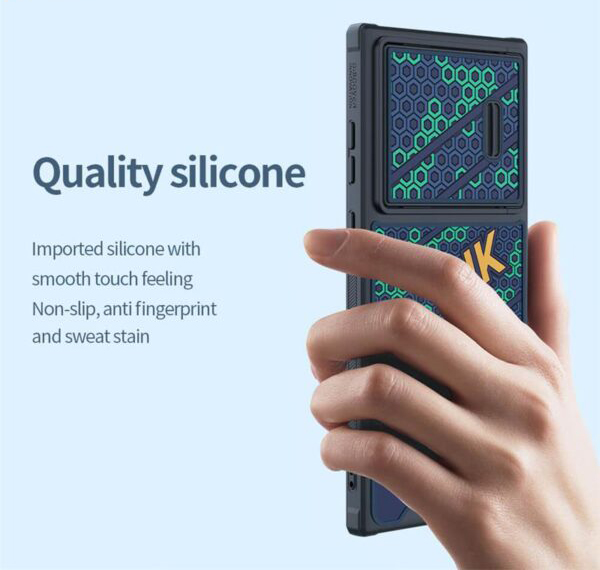 کاور نیلکین مدل Striker S طراحی سه بعدی،زیبایی و کاربردی بودن را با هم ارائه میدهد.بافت روی سطح باعث میشود در دست سر نخورد و از پایین افتادن گوشی جلوگیری میکند.علاوه بر آن جلوی خط و خش را هم میگیرد و ظاهر زیبایی که دارد را حفظ میکند.کاور نیلکین مدل Striker S بدنه گوشی را به خوبی در بر میگیرد،دور آن فیکس میشود و گوشی را در برابر افتادن،ضربه و خط و خش محافظت میکند.این کاور با داشتن محافظ لنز از دوربین گوشی در مقابل ضربات و آسیب ها مراقب می کند و اجازه نمی دهد گرد و خاک وارد آن شود.تمام پورتها،اسپیکر،میکروفن،دکمهها و دوربین گوشی در دسترس شما قرار دارند و بدون مشکل میتوانید از آن استفاده کنید. خیلی راحت و بدون دردسر به تمام امکانات گوشی دسترسی دارید.جنس دور تا دور از سیلیکون باکیفیت است.سیلیکون حسی نرم و دلپذیر میدهد و در دست گرفتن گوشی را راحت میکند. به علاوه گوشی را در برابر لکههای چربی، اثر انگشت و عرق و … محافظت میکند.کاور نیلکین مدل Striker S دارای طرح لانه زنبوری است. این طرح با رنگهای روشن سبز و آبی ظاهری اسپرت و خاص به کاور میدهد. لوگوی نیلکین هم با رنگ نارنجی روی قاب حک شده که جلوه زیبایی دارد. به علاوه زمینه سرمهای تیره دارد که رنگها و طراحی سه بعدی قاب را بهتر نشان میدهد.لایه زیری قاب از پلی کربنات است که جنسی سخت و محکم دارد. این زیرلایهی محکم دوام قاب را بالا میبرد و نمیگذارد به مرور زمان شل شود یا تغییر شکل بدهد.کاور نیلکین مدل Striker S بسیار مقاوم و باکیفیت است.تکنولوژیهای مدرن و متریالهای مقاوم در ساخت آن استفاده شده است.جزو قابهایی است که میتوانید تا طولانی مدت از آن استفاده کنید و هیچ مشکلی هم نخواهید داشت.قالب گیری آن مطابق با مدل گوشی شما و با دقت بالا انجام شده است.محل سنسورها، اسپیکر و پورت شارژ دقیقا در جای خودش برش خورده است و هیچ اختلالی در کارکرد گوشی ایجاد نمیکند.با داشتن کاور نیلکین مدل Striker S خیالتان از لنز دوربین گوشی هم راحت خواهد بود. فاصله سطح لنز تا بالای قاب حدودا 0.2 میلیمتر است که از برخورد آن با زمین جلوگیری میکند.به دلیل لبههای نرمی که دارد خیلی ساده روی گوشی نصب میشود. کافیست لبههای آن را روی لبههای گوشی قرار دهید و با کوچکترین فشاری روی گوشی نصب میشود.