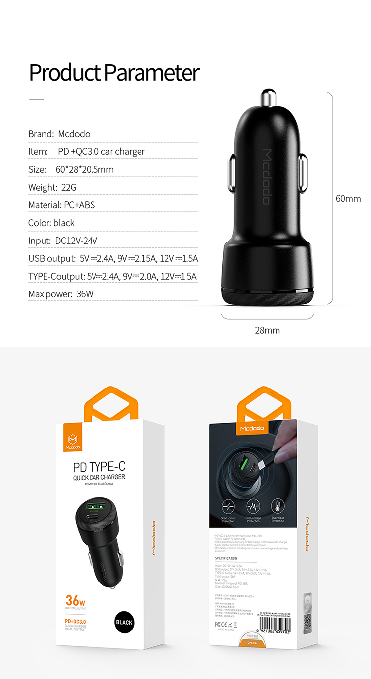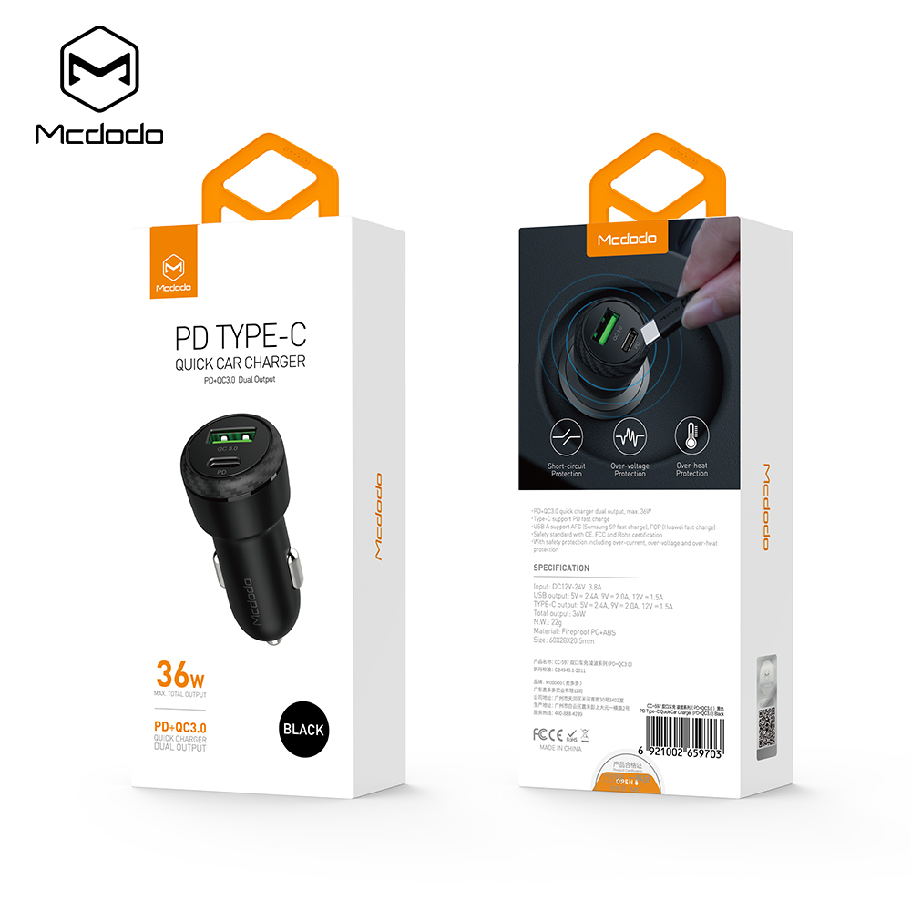 شارژر فندکی CC-5970 ساخت کمپانی مک دودو می باشد. این شارژر فندکی تنها 22 گرم وزن داشته و بسیار سبک می باشد. ترکیبی از مواد غیر مشتعل و مقاوم در برابر آتش نظیر PC و ABS در ساخت این شارژر فندکی مورد استفاده قرار گرفته است. وجود لایه های ایمنی محافظ در یک شارژر، ارزش خرید آن را دوچندان می نماید. این شارژر در برابر هرگونه افزایش شدت جریان، افزایش ولتاژ یا افزایش درجه حرارت مقاوم می باشد.