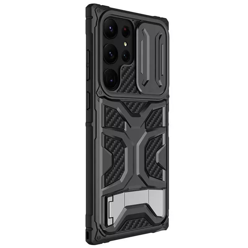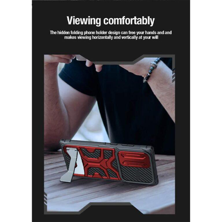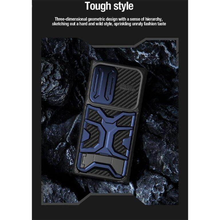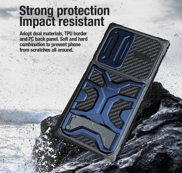 مقاومترین و بهترین قاب نیلکین 2023 بالاخره از راه رسید،این کاور کاملا ضدضربه بوده و بسیار خوش دست و لاکچری میباشد.و دارای پایه نگهدارنده در پشت آن برای راحت فیلم دیدن و …میباشد.کاور نیلکین مدل Adventurer Pro در قسمت دوربین نیز دارای محافظت عالی است.دارای پوشش کشویی است که هنگامی که نمیخواهید از دوربین استفاده کنید روی آن را میپوشاند.این پوشش از ضربه خوردن لنزها جلوگیری میکند اما برای افرادی که نگران حریم شخصی خود هستند نیز بسیار مفید خواهد بود.دور تا دور قسمت دوربین بافت تقویت شده قرار گرفته که ارتفاعی بالاتر از سطح دوربین دارد.بنابراین حتی هنگامی که پوشش روی دوبین نیست باز هم حد حداقلی از محافظت را خواهید داشت.کاور نیلکین مدل Adventurer Pro طراحی دقیقی دارد.لبهها کاملا پوشش داده میشوند و تمام امکانات و پورتهای گوشی هم به طور کامل در دسترس شما قرار دارند.هنگام شارژ کردن گوشی یا استفاده از هندزفری نیازی نیست گوشی را از قاب خارج کنید.در هر چهار گوشه بالشتکهای ضد ضربه وجود دارد که گوشی را در برابر افتادن به شدت مقاوم میکند و نیروی شدید را دفع میکند.پوشش داخلی کاور دارای طرح کندو مانند است.این طرح سبب میشود قاب به گوشی نچسبد.بنابراین عبور هوا و گردش آن راحتتر خواهد بود و از داغ شدن بدنه جلوگیری میشود.اگر هنگام خرید لوازم جانبی گوشی،عمر و دوام بالا از پارامترهای مهم برای شماست پس این قاب یک انتخاب عالی خواهد بود.مواد اولیه باکیفیتی که در ساخت این محصول استفاده شده است دوام طولانی مدت آن را تضمین میکند.تکنولوژی پیشرفتهای در ساخت این کاور به کار گرفته شده است و علاوه بر ظرافت بالایی که دارد از نظر کیفیت و ماندگاری هم در سطح بالایی قرار دارد.کاور نیلکین مدل Adventurer Pro طراحی خاص و جذابی دارد. وجود شیار و بافت خاص روی کاور نه تنها در زیبایی آن نقش دارد، بلکه ایجاد اصطکاک کرده و سبب میشود در دست نگه داشتن آن خیلی راحتتر باشد.کاور نیلکین مدلAdventurer Pro نصب سادهای دارد. بدون اینکه فشار زیادی به بدنه گوشی وارد شود میتوانید آن را نصب کنید و در نهایت راحتی از آن استفاده کنید.خیلی راحت و کاملا دقیق روی گوشی فیکس میشود و اصلا لق نیست.علاوه بر آن ورودی پورتهای گوشی را مسدود نمیکند و جلوی اسپیکر یا سنسورها را نیز نمیگیرد بنابراین کار با آن سخت نخواهد بود.