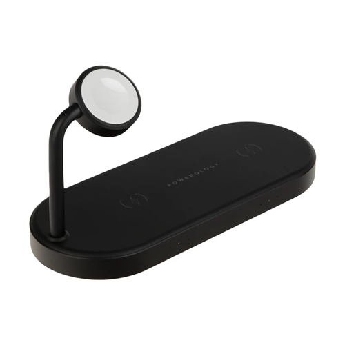 شارژر وایرلس Powerology P31MFCHWH ، طراحی و ساختار منحصربهفردی دارد و یکی از مناسبترین شارژرها برای محصولات اپل است. در قسمت پایه آن، دو پنل شارژ بیسیم در کنار هم وجود دارد که میتوانند گوشیهای مختلف از برندهای متفاوت را با استفاده از فناوری Qi شارژ کنند. در گوشهای از پنل، یک پایه مخصوص قراردادن اپل واچ وجود دارد و در کنار پایه، یک پورت USB برای اتصال کابل شارژ موجود است.