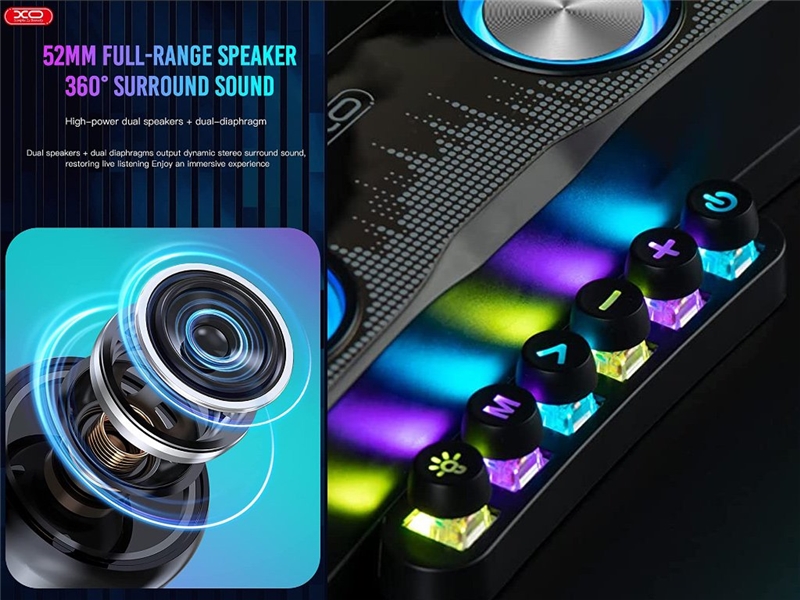 اگر شما جزو آن دسته از افرادی هستید که فانتزی گوش دادن به موسیقی به اندازه خود موسیقی برایتان لذت بخش است اسپیکر رومیزی XO بهترین گزینه برای انتخاب است. اسپیکر استریو رومیزی F36 با دارا بودن دو بلندگوی فول رنج با اندازه 5.2 اینچ و دو دیافراگم فلزی جهت ریفلاکس بهتر صدا های بم قادر است به وسیله یک آمپلی فایر داخلی 10وات (5w*2) استریو صدایی 360 درجه تولید کند. اما چیزی که اسپیکر F36 را از سایر بلندگو ها متمایز می کند نورپردازی شگفت انگیز با استفاده از رنگ های مجموعه RGB است که توسط کاربر به وسیله یک دکمه قابل سفارشی کردن نیز می باشد.