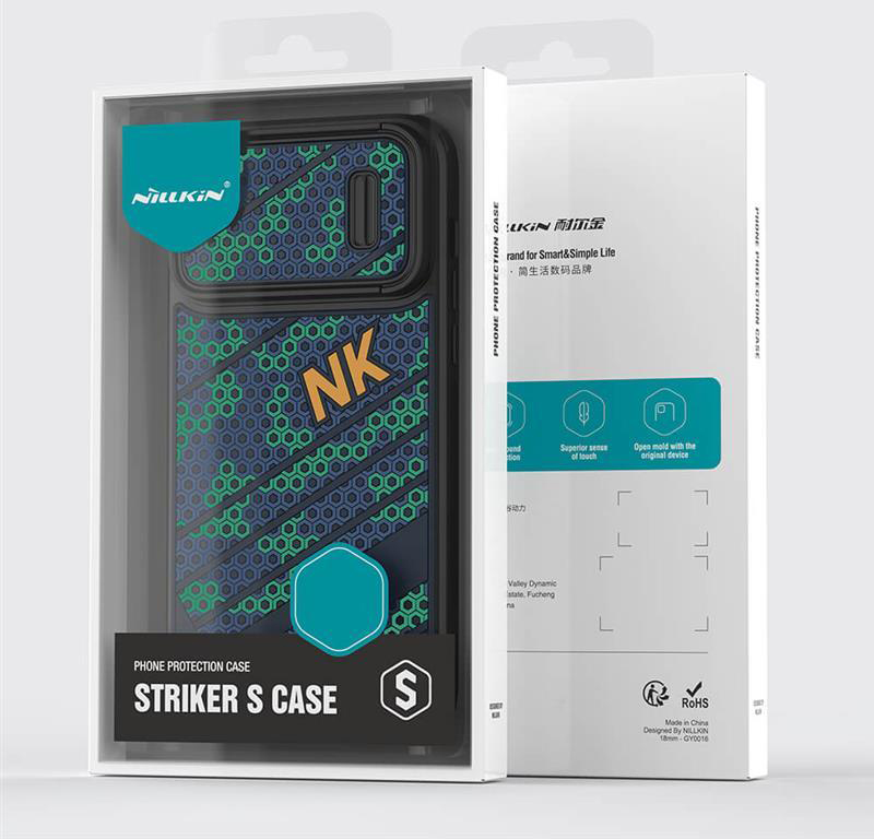 کاور نیلکین مدل Striker S Sport ، طراحی سه بعدی،زیبایی و کاربردی بودن را با هم ارائه می‌دهد.بافت روی سطح باعث می‌شود در دست سر نخورد و از پایین افتادن گوشی جلوگیری می‌کند.علاوه بر آن جلوی خط و خش را هم می‌گیرد و ظاهر زیبایی که دارد را حفظ می‌کند.کاور نیلکین مدل Striker S بدنه گوشی را به خوبی در بر می‌گیرد،دور آن فیکس می‌شود و گوشی را در برابر افتادن،ضربه و خط و خش محافظت می‌کند.این کاور با داشتن محافظ لنز از دوربین گوشی در مقابل ضربات و آسیب ها مراقب می کند و اجازه نمی دهد گرد و خاک وارد آن شود.تمام پورت‌ها،اسپیکر،میکروفن،دکمه‌ها و دوربین گوشی در دسترس شما قرار دارند و بدون مشکل می‌توانید از آن استفاده کنید. خیلی راحت و بدون دردسر به تمام امکانات گوشی دسترسی دارید.جنس دور تا دور از سیلیکون باکیفیت است.سیلیکون حسی نرم و دلپذیر می‌دهد و در دست گرفتن گوشی را راحت می‌کند. به علاوه گوشی را در برابر لکه‌های چربی، اثر انگشت و عرق و … محافظت می‌کند.کاور نیلکین مدل Striker S دارای طرح لانه زنبوری است. این طرح با رنگ‌های روشن سبز و آبی ظاهری اسپرت و خاص به کاور می‌دهد. لوگوی نیلکین هم با رنگ نارنجی روی قاب حک شده که جلوه زیبایی دارد. به علاوه زمینه سرمه‌ای تیره دارد که رنگ‌ها و طراحی سه بعدی قاب را بهتر نشان می‌دهد.لایه زیری قاب از پلی کربنات است که جنسی سخت و محکم دارد. این زیرلایه‌ی محکم دوام قاب را بالا می‌برد و نمی‌گذارد به مرور زمان شل شود یا تغییر شکل بدهد.کاور نیلکین مدل Striker S بسیار مقاوم و باکیفیت است.تکنولوژی‌های مدرن و متریال‌های مقاوم در ساخت آن استفاده شده است.جزو قاب‌هایی است که می‌توانید تا طولانی مدت از آن استفاده کنید و هیچ مشکلی هم نخواهید داشت.قالب گیری آن مطابق با مدل گوشی شما و با دقت بالا انجام شده است.محل سنسورها، اسپیکر و پورت‌ شارژ دقیقا در جای خودش برش خورده است و هیچ اختلالی در کارکرد گوشی ایجاد نمی‌کند.با داشتن کاور نیلکین مدل Striker S خیالتان از لنز دوربین گوشی هم راحت خواهد بود. فاصله سطح لنز تا بالای قاب حدودا 0.2 میلی‌متر است که از برخورد آن با زمین جلوگیری می‌کند.به دلیل لبه‌های نرمی که دارد خیلی ساده روی گوشی نصب می‌شود. کافیست لبه‌های آن را روی لبه‌های گوشی قرار دهید و با کوچکترین فشاری روی گوشی نصب می‌شود.