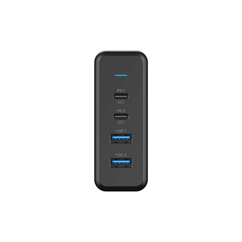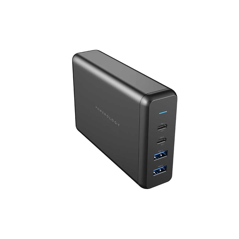 شارژر Powerology power terminal P156PDQCUKBK با حداکثر توان خروجی 156 وات و داشتن 4 پورت خروجی متشکل از 2 عدد USB و 2 عدد Type C می تواند انتخاب خوبی برای میز کارتان باشد. این شارژر به شکل رومیزی و با فناوری ساخت گالیم نیترات GaN طراحی شده است و به عنوان هاب شارژر مورد استفاده قرار می گیرد.