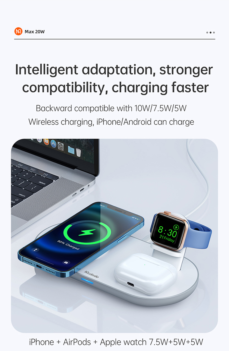 شارژر وایرلس سه کاره مک دودو مدل Mcdodo CH-7060