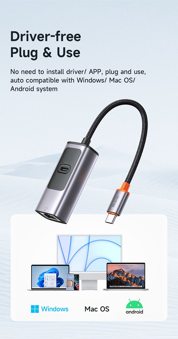 تبدیل هاب چندکاره 2 پورت مک دودو مدل MCDODO HU-0680 پورت ورودی تایپ سی