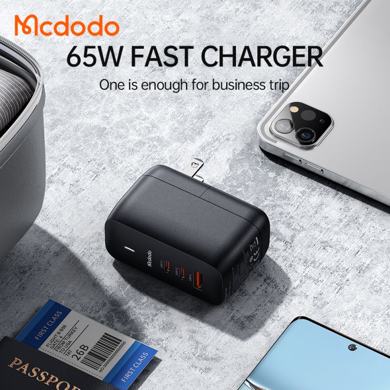 شارژر آداپتور دیواری 3 پورت 65 وات مک دودو مدل MCDODO CH-8442 GAN به همراه کابل 2 متری