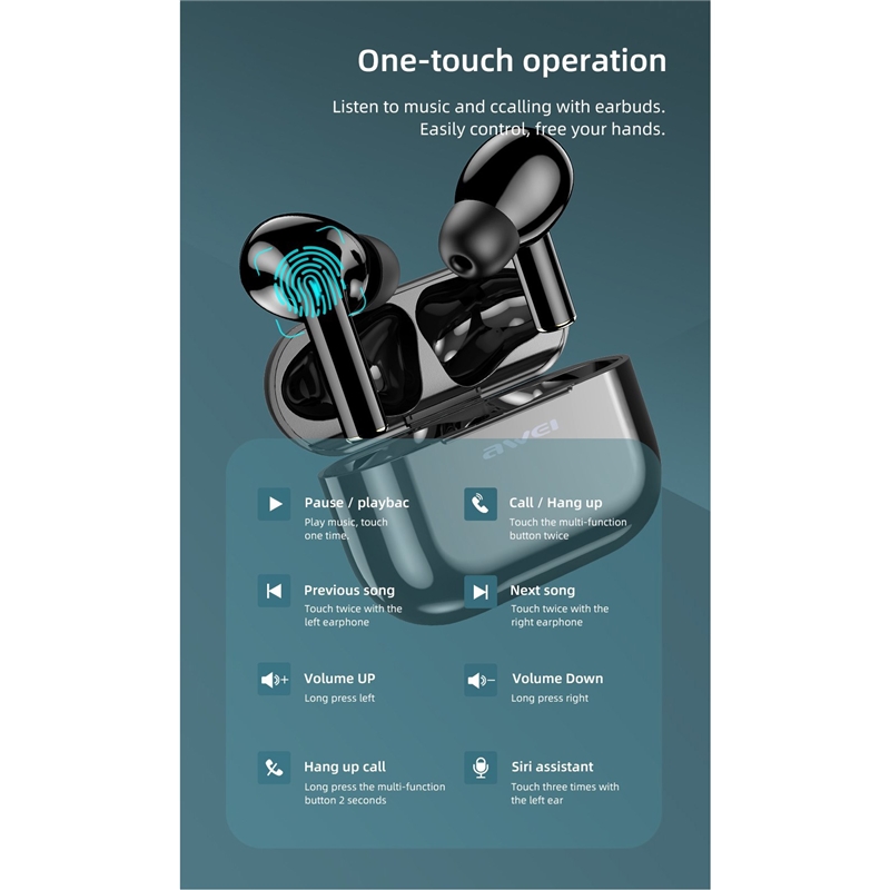 بر روی هندزفری اوی Awei T29 ، پنل‌های لمسی قرار داده شده است که با لمس کردن این پنل‌ها می‌توانید کاربردهای مختلفی را که اوی برای شما در نظر گرفته است انجام داده و در کل کاربری راحت‌تری داشته باشید. نحوه کار با این پنل‌های لمسی به شما اجازه می‌دهد تا بتوانید برخی نیازهای خود را با آن‌ها بر طرف کرده و نیاز کمتری به خود گوشی داشته باشید. این پنل‌های لمسی روی ایرفون ها قرار داده شده‌اند. کارایی‌های مختلفی که با این پنل‌ها در اختیار دارید برای قطع و وصل کردن تماس و پخش و قطع کردن صدای موسیقی است و به طور کلی کنترل بیشتری را به شما می‌دهد.
