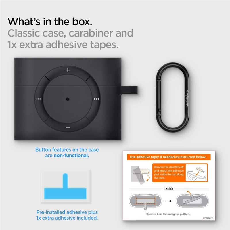 Spigen Classic Shuffle Silicone Full Cover Case For AirPods Pro با طراحی Retro-inspired، به دستگاه شما ظاهری کلاسیک و زیبا میبخشد و لایه سیلیکونی نرم آن، باعث مقاومت آن در برابر خطوخش و جذب ضربه میشود. لازم به ذکر است که این کاور دارای نوار چسبان پیشنصب شده برای حمایت بیشتر است.