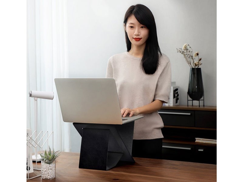 یکی از مهمترین نقاط قوت پایه نگهدارنده لپ تاپ بیسوس SUZB-A01 نسبت به استندهای دیگر این است که حالت ایستاده را نیز برای کاربر در نظرگرفته است. تصور کنید در جلسه و در حال ارائه با لپ تاپ خود هستید و ایستادهاید، به واسطه این محصول شما حالتی با ارتفاع زیاد نیز برای این مواقع خواهید داشت.