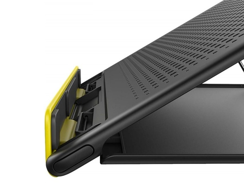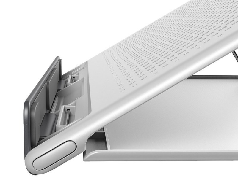 زاویه دار بودن پایه و صفحه ای که لپتاپ روی آن قرار میگیرد ممکن است باعث لغزش لپتاپ شود اما بیسوس برای پیشگیری از این اتفاق در این پایه لپ تاپ، بخشی از استند را از جنس سیلیکون ضد لغزش و نرم ساخته است که وظیفه این بخش، مانع از لغزش لپتاپ بر روی استن می باشد.