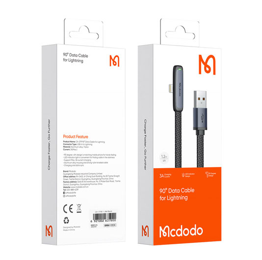 کابل شارژ لایتنینگ 90 درجه مک دودو Mcdodo Lightning 90 degree Data Cable CA-2791