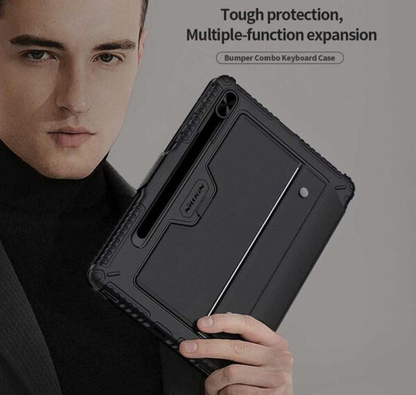 کیف کلاسوری کیبورد دار نیلکین مدل Bumper Combo Keyboard مناسب برای تبلت سامسونگ Galaxy Tab S8