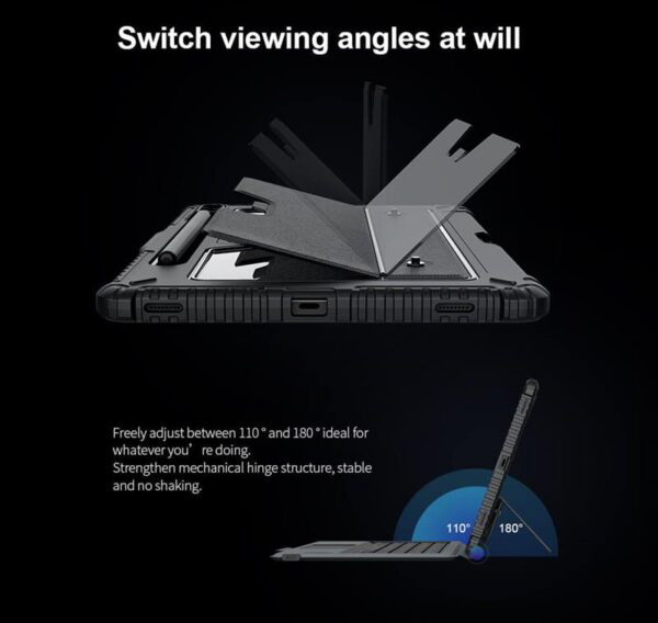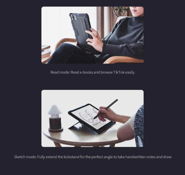 کیف کلاسوری نیلکین مدل New Bumper Combo Keyboard یکی از مهم ترین و کاربردی ترین لوازم جانبی است که شما در کنار Galaxy Tab خود باید تهیه کنید تا تجربه کاربری خود را با دستگاهتان به حداکثر برسانید. ابتدایی ترین کاری که New Bumper Combo Keyboard برای شما انجام خواهد داد محافظت کامل از تمام قسمت ها به خصوص دوربین شماست. پوشش خارجی که ترکیبی با کیفیت از پلی کربنات PC و TPU است و نسبت به نسخه قبلی خود ارتقا یافته است Galaxy Tab شما را در برابر هرگونه ضربات احتمالی و خط و خش ناشی از برخورد با اشیا تیز حفظ میکند. داشتن چنین کیف محافظی در وهله اول با توجه به ارزش بالای دستگاه شما یک امر غیر قابل چشم پوشی است. قابلیت دیگر قابل ملاحظه این است که این قاب برای شما در زاویه 110 تا 180 درجه به صورت استند در می‌آید تا بتوایند به سادگی هرچه تمام تر به مشاهده فیلم و سریال و یا انجام طراحی و مطالعه کتاب یا مقالات الکترونیکی خود بپردازید بدون آنکه نگران سر خوردن دستگاه باشید. در چهار گوشه این قاب برآمدگی هایی ایجاد شده است تا در صورت سقوط دستگاه ورود ضربه به دستگاه را به حداقل برساند. یکی از مهم ترین ویژگی های این کیف کلاسوری داشتن یک کیبورد بی سیم با بورد 10 متری است که طراحی آن نسبت به نسخه قبلی خود بهینه تر شده است و دکمه های کیبورد طوری طراحی شده اند که بسیار نرم و بدون ایجاد لغزندگی در هنگام تایپ هستند و کمترین صدای ممکن را در هنگم تایپ ایجاد میکنند. دکمه های میانبر آن نیز نسبت به مدل قبلی بهینه تر شده و دارای تغییراتی شده اند. یک باتری 150 میلی آمپر ساعتی لیتیومی در آن بکار رفته است که تنها با 1.5 ساعت شارژ طی تست ها با حدود روزی 2 ساعت کارکرد تا 30 روز برای کاربر کارایی خواهد داشت، پس نگران اتمام شارژ آن در هنگام سفر و یا محیط های بیرون نخواهید بود. تاچ پد روی کیبورد نیز با قابلیت های مختلفی طراحی شده است و همچنین گزینه ای طراحی شده تا بتوانید آنره قفل کنید تا اگر به صورت تصادفی انرا لمس کردید به مشکلی نخورید. نسخه بلوتوث این کیبورد 3.0 است پس حساسیت عملکرد بالایی از آن خواهید دید و به صورت کلی به همراه این کیف کلاسوری فوق العاده خود میتوایند به مانند یک نوت بوک کامل استفاده نمایید. در قسمت جلویی قاب نیز محلی برای قرار دادن قلم هوشمند اپل و شارژ آن به صورت وایرلس طراحی شده است.