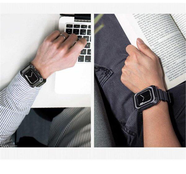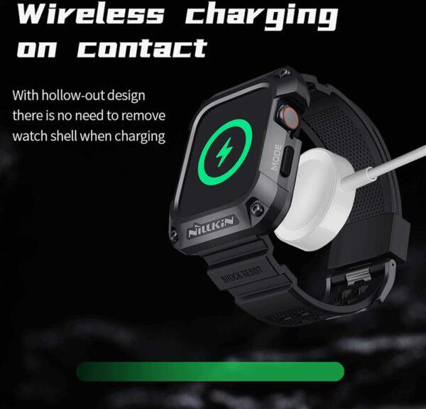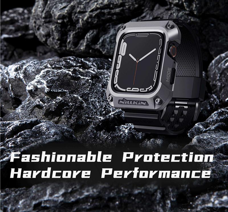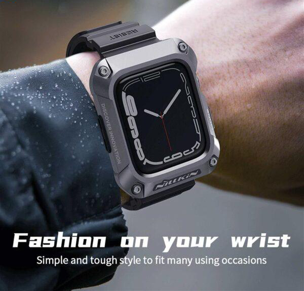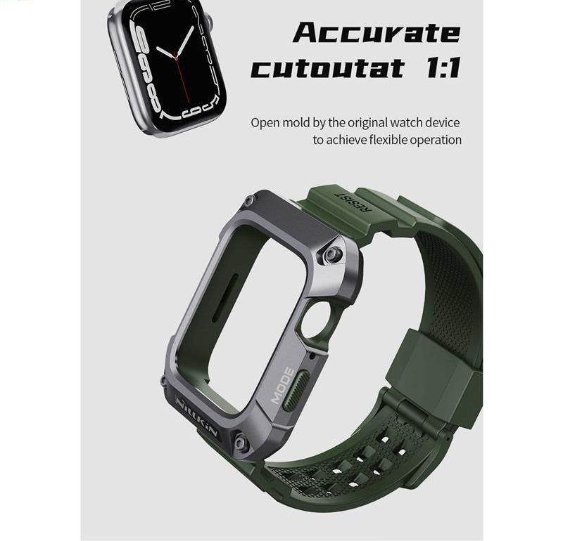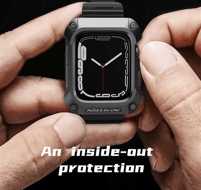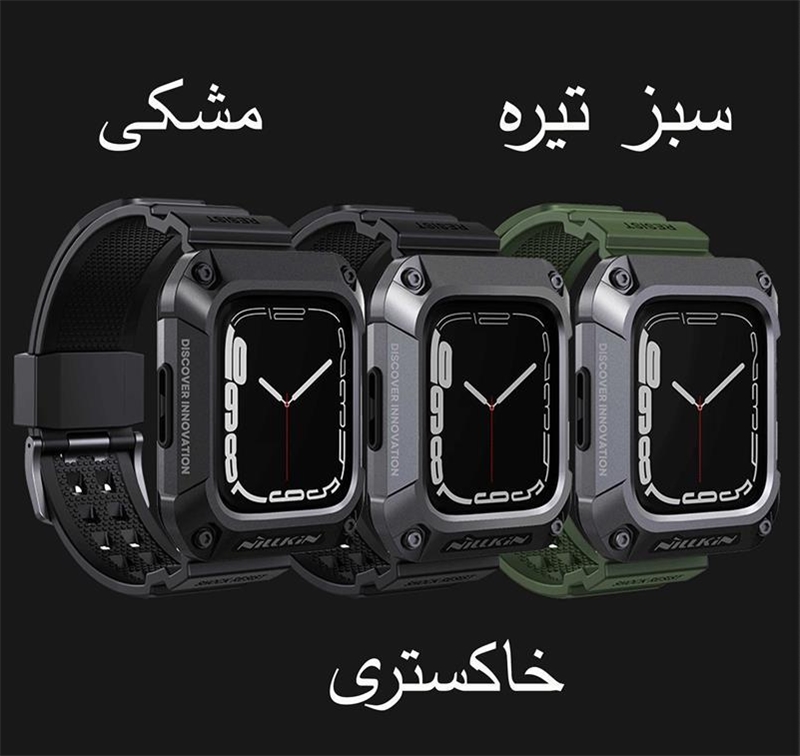 این روزها کاربران زیادی از ساعت‌های هوشمند استفاده می‌کنند.کاربرد این ساعت‌ها برای هرکسی متفاوت است؛ممکن است یک نفر از ساعت هوشمند خود برای ورزش و یا به جای تلفن همراه استفاده کند.کاربرد گسترده و متنوع ساعت هوشمند،باعث می‌شود ظاهر آن نیز از اهمیت ویژه‌ای برخوردار باشد.زیرا ما با ساعت خود،به مکان‌های مختلفی می‌رویم و این ساعت،بخشی از استایل ما و یک اکسسوری مهم است.اگر به ظاهر و همچنین راحتی خود اهمیت می‌دهید،بهتر است برای اسمارت واچ خود یک بند مناسب تهیه کنید؛بندی که علاوه بر زیبا بودن،بسیار راحت و نرم باشد، همچنین اگر شما جز افراد باشید که همیشه از ساعت هوشمند در حال استفاده هستید،هر لحظه امکان برخورد ضربه یا افتادن ساعت‌تان وجود دارد.ممکن است حین ورزش،کار یا حتی خواب دست‌تان به جایی بخورد یا روی زمین بیافتید. در نتیجه استفاده از ساعت بدون محافظ ریسک بالایی دارد.به خصوص صفحه نمایش آن که بسیار ضعیف و شکننده است.احتمالاً تا به امروز خوش شانس بوده‌اید که اتفاقی نیافتده است.پس هر چه زودتر باید محافظی مطمئن برای ساعت تهیه کنید.از طرفی خرید این دو محصول به صورت جداگونه بسیار وقت گیر هستش و این امکان هستش که محصولی که خریداری کردین کیفیت مناسب و کارایی لازم را نداشته باشه.پیشنهاد ما به شما خرید کاور نیلکین مدل DynaGuard مناسب برای اپل واچ میباشد.با خرید این محصول شما در اصل با یک تیر دو نشون زدین:هم یک بند باکیفیت خریداری کردین ،هم یک کاور با کیفیت و مقاوم.کاور اپل واچ این محصول از ترکیب آلیاژ فلز و TPU ساخته شده که دارای طراحی بسیار عالی و قوی شبیه به زره های مکانیکی میباشد که دارای ظاهری بسیار زیبا و شیک هستش و در برابر ضربه و سقوط مقاومت فوق العاده بالایی دارد.همچنین به دلیل داشتن لبه های برجسته جلوی وارد شدن آسیب به صفحه نمایش اپل واچ را میگیرد.بند این محصول از جنس پلاستیک نرم(TPU)میباشد.بند این ساعت دارای قفل سگکی دو پایه فلزی می باشد که به خوبی ساعت را روی دست شما قفل میکند و شما بدون هیچ نگرانی با خیال راحت مشغول باشگاه،ورزش، کوهنوردی و کمپینگ یا….شوید.برای شارژ بیسیم لازم نیست که ساعت را از کاور در بیاورید و به راحتی ساعتتان را شارژ کنید.این محصول به صورت کاملا دقیق و اندازه برش خورده،نصب این محصول بسیار آسان میباشد.