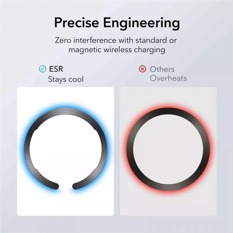 حلقه مغناطیسی طراحی شده به خصوص این محصول، تلفن همراه شما را در حین استفاده از شارژر بی‌سیم استاندارد یا مغناطیسی خنک نگه می‌دارد.