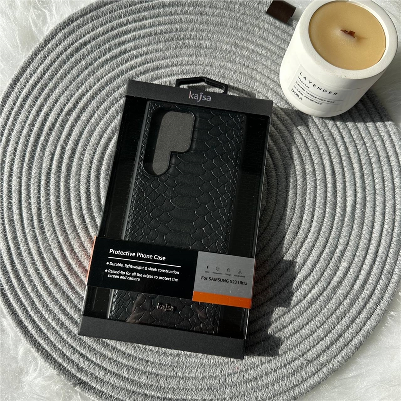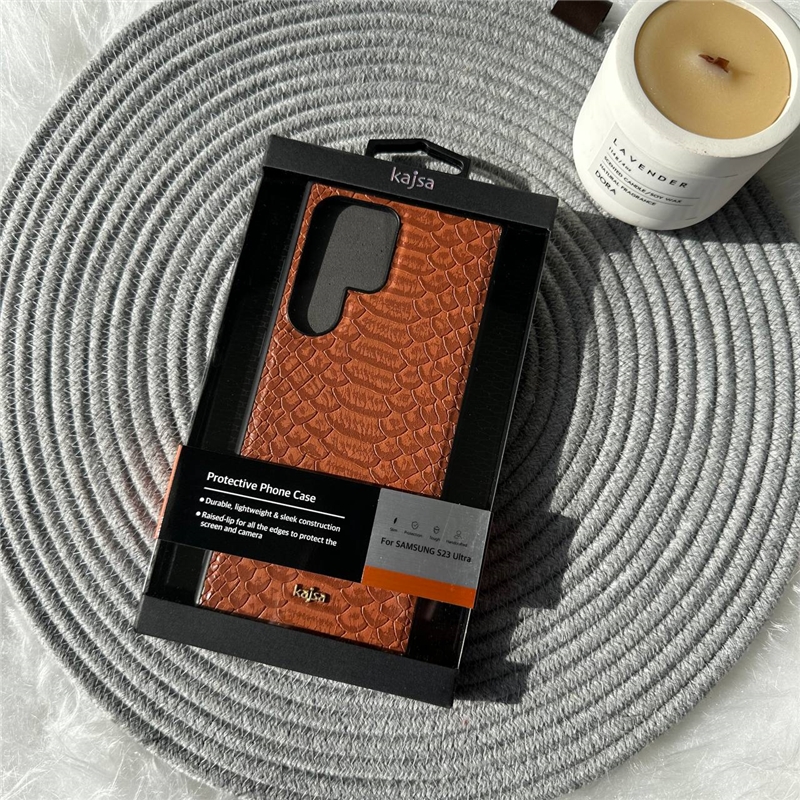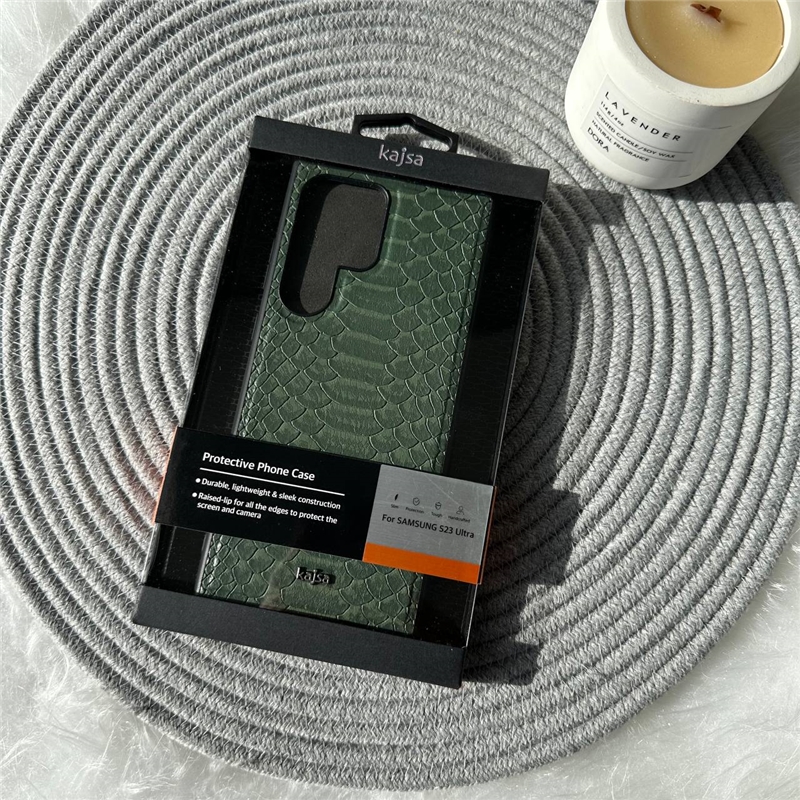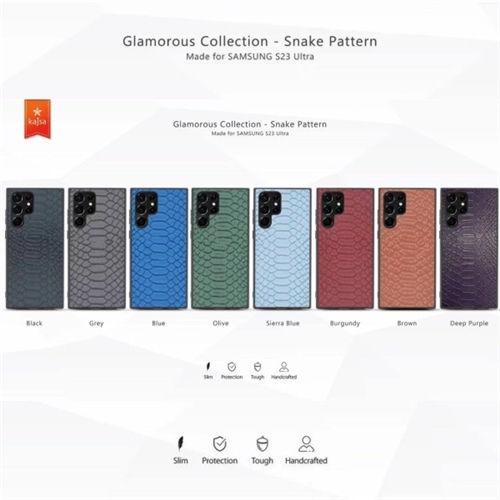 یکی از قاب های زیبا و پرکاربرد، قاب چرمی برند کجسا Snake مخصوص گوشی های سامسونگ می باشند که برای محافظت از گوشی سامسونگ ساخته شده اند.و همچنین با جنس چرم طبیعی و رنگبندی زیبا هم زیبایی خاصی به قاب داده اند،این قاب ها مقاومت بسیار بالایی دربرابر ضربه دارند و به علت شفاف بودن بودن پشت قاب، رنگ و شکل ظاهری موبایل شما قابل مشاهده می باشد.