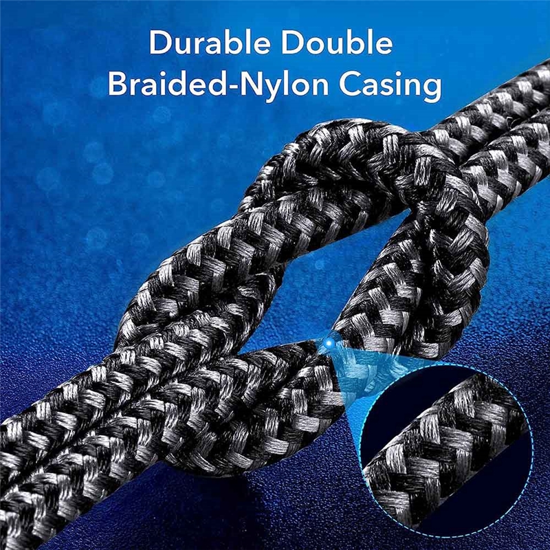 ۳. مقاومت بالا در برابر سایش: پوشش نایلونی تابیده و محکم این کابل، منجر به کمتر گره خوردن و مقاومت بیشتری نسبت به کابل‌های رسمی اپل می‌شود. سرهای پلاگ کاملاً آلومینیومی نیز مطمئن می‌شوند که کابل شما هنگام وصل و جدا شدن آسیب نمی‌بیند.