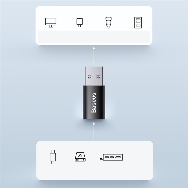 کارایی دیگری که می‌توانید از این تبدیل دریافت کنید، شارژ کردن گوشی است. بنابراین اگر کابلی دارید که برای شارژ کردن دستگاه، تنها امکان استفاده از کانکتور Type C را به شما می‌دهد، می‌توانید از این مبدل استفاده کرده و به شارژ کردن دستگاه مورد نظر خود بپردازید. به این صورت که کانکتور Type C را به تبدیل وصل کرده و سپس کانکتور USB را به پاوربانک، شارژر فندکی، آداپتور شارژ یا چند راهی مورد نظرتان وصل خواهید کرد، به این ترتیب  امکان استفاده از آن را برای شما مهیا می‌شود. گفتنی است که طبق ادعای بیسوس، این تبدیل از شارژ سریع نیز پشتیبانی می‌کند.