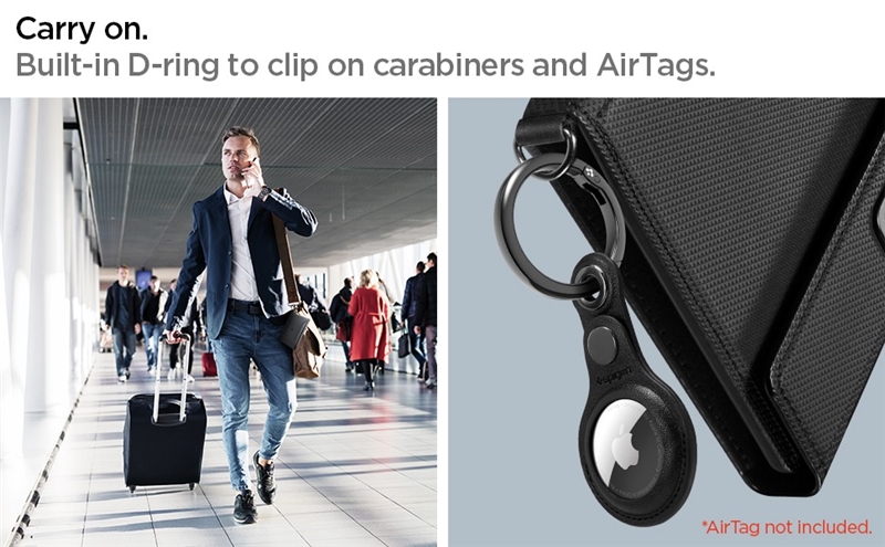 همچنین، کیف پاسپورت اسپیگن آماده برای اتصال به اشیاء دیگر است. با حلقه D آلیاژ روی آن، می‌توانید آن را به یک کارابین یا دستگاه ردیابی متصل کنید. این ویژگی به شما امکان می‌دهد کیف خود را به صورت ایمن نگهدارید و از از دست دادن آن جلوگیری کنید.