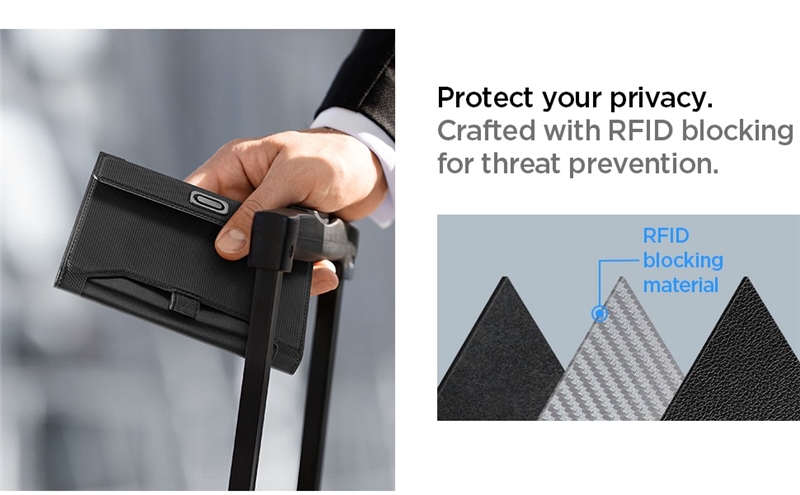 این کیف از مواد مسدود کننده RFID ساخته شده است تا در هر جایی که می‌روید، حفاظت نهایی را در برابر تهدیدات فراهم کند.