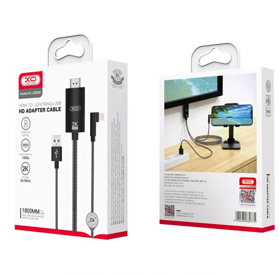 کابل لایتنینگ به اچ دی ام آی 1.8 متری ایکس او XO-GB008 HDMI To Lightning USB HD Adapter Cable