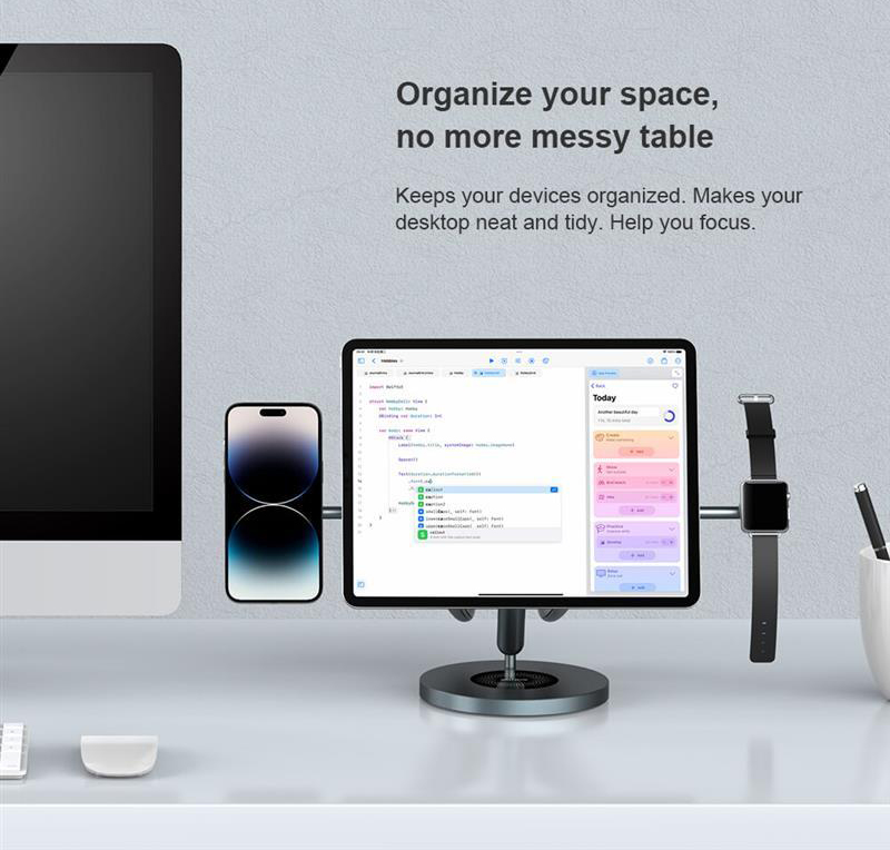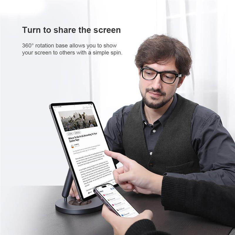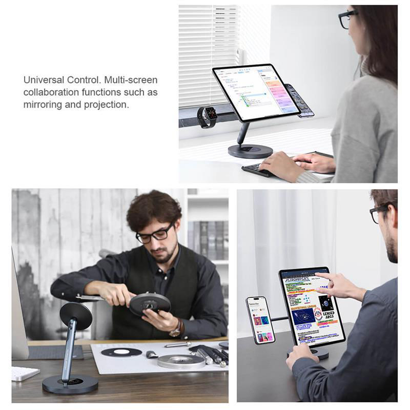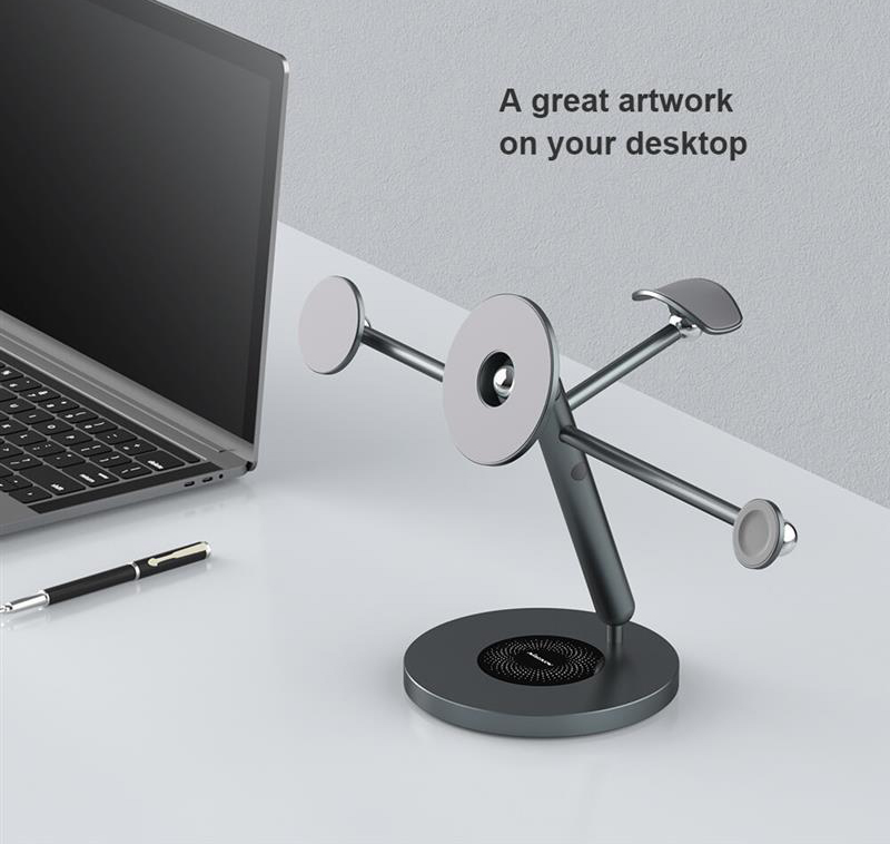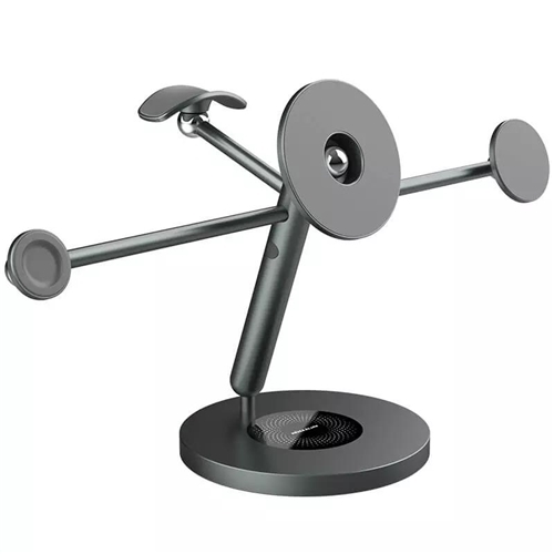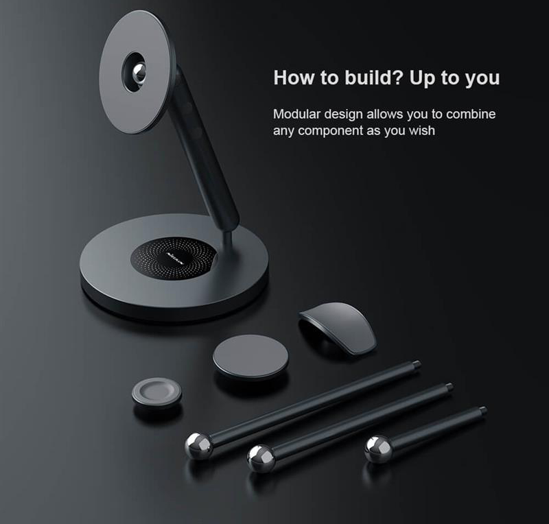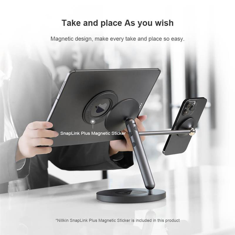 یکی از جدید ترین محصولات برند نیلکین طراحی شده سال 2023 پایه نگهدارنده آیپد و تبلت، گوشی موبایل، ساعت هوشمند و هچنین هدست نیلکین مدل SnapBranch Modular Device Station. پرکابرد ترین محصول برند نیلکین برای محیط های مختلف به خصوص محیط های اداری! این محصول یک پایه نگهدارنده شاخه به شاخه با قابلیت تنظیم در 3 شک مختلف است که بسته به فضای در اختیار شما میتوانید به سادگی هرچه تمام تر آنرا شخصی سازی کنید. در حالت اول شما یک پایه نگهدارنده آیپد یا تبلت خواهید داشت که توسط SnapSafe و یا برچسب های مگنتی SnapLink ( در شرایطی که تبلت شما فاقد SnapSafe باشد) به صورت بسیار مطمعن روی آن قرار میگیرد و امکان چرخش تا 90 درجه برای آن فراهم است . نگرانی بابت سقوط تبلت از روی پایه نگهدارنده کاملا بی مورد است چراکه طبق آزمایشات تا وزن بالغ بر 2 کیلوگرم تست شده و هیچ مشکلی وجود نداشته است . حتی برای افرادی که قصد طراحی، مشاهده فیلم و یا مطالع دارن نیز این پیاه نگهدارنده بسیار مناسب است . در حالت دوم با افزودن شاخه های کناری میتوانید گوشی همراه خود را در کنار تبلت داشته باشید و یا اپل واچ خود را در سمت مخالف روی شاخه مختص به خود قرار دهید . البته همه این ها به کمک تکنولوژی SnapSafe امکان پذیر است اما اگر هم گوشی همراه شما فاقد آن باشد هیچ مشکلی نخواهید داشت چراکه نیلکین برای شما یک برچسب مغناطیسی SnapLink قرار داده است تا گوشی همراه شما از این تکنولوژی بی بهره نماند. میتوانید روی شاخه مختص به اپل واچ یا گوشی همراه دستگاه های خود را آزاده حرکت دهید و در زاویه ای مناسب از آن استفاده کنید . در حالت سوم خود که یک پایه نگهدارنده کامل در اختیار شما قرار خواهد گرفت شاخه ای در قسمت پشتی اضافه میشود که به طور معمول مختص انواع مختلف هدست ها هست و به صورت ثابت قرار گرفته است . یکی از مهم ترین ویژگی های این پایه نگهدارنده جنس و کیفیت بالای ساخت آن است که ضمن زیبایی و کارآمدی، از متریال اولیه عالی ساخته شده است . قسمت زیرین این پایه نگهدارنده به صورتی طراحی شده است که بسیار محکم با پد ضد لغزشی که دارد بر روی سطح قرار میگیرد و روی آن نخواهد لغزید. همچنین یکی از بهترین ویژگی های آن چرخش 360 درجه آن است که میتوانید آن را به سادگی بچرخانید و زاویه مورد نظر خود را تنظیم کنید.