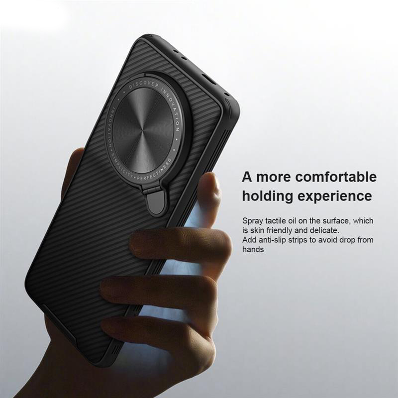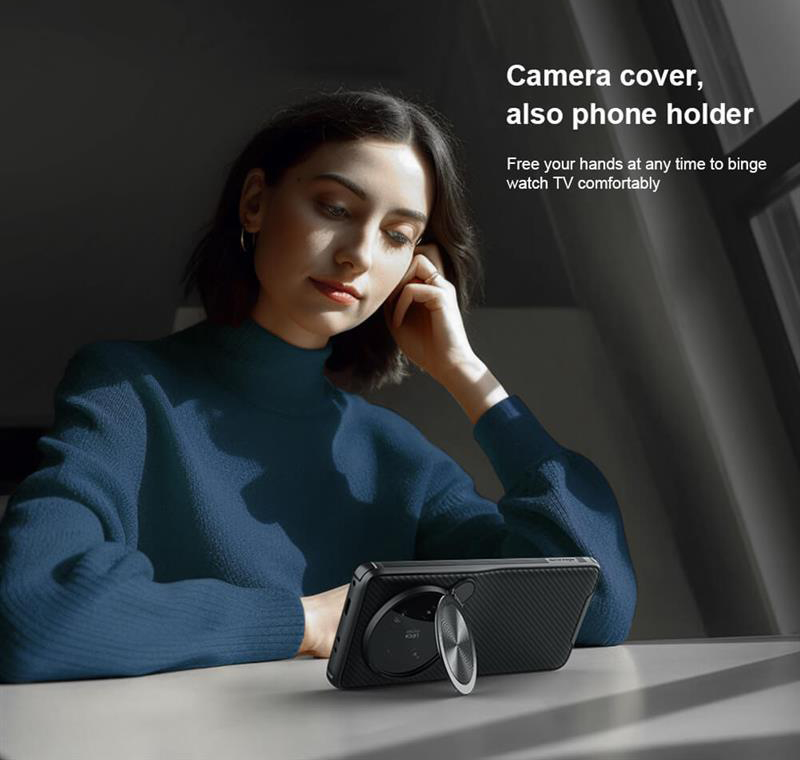 قاب محافظ Xiaomi 13 Ultra Nillkin CamShield Prop Case از جنس PC سخت بوده و بخش های اطراف آن دارای خط های موربی می باشد که برای جلوگیری از لغزیدن گوشی در دستان شما تعبیه شده است. همچنین قسمت پشتی قاب نیز از همین طرح پیروی می کند. اما مزیت اصلی این قاب نسبت به کاورهای دیگر، محافظت کامل از دوربین گوشی است. در قسمت پشت قاب CamShield Prop یک بخش متحرک وجود دارد که مانند یک درپوش لولایی روی دوربین گوشی را می پوشاند. در صورت دلخواه می توانید این درپوش را کنار زده و از دوربین خود استفاده کنید. از این درپوش می توان به عنوان استند استفاده کرد و گوشی را روی سطح قرار داد.