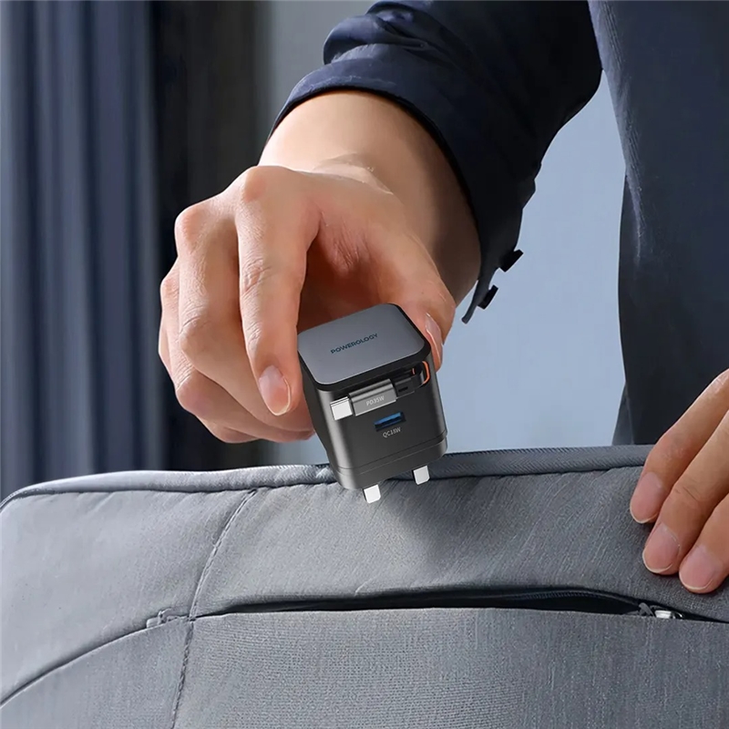 یکی از ویژگیهای جذاب این مدل، طراحی جمعشونده آن است. پینهای برق بهصورت تاشو درون بدنه مخفی میشوند و باعث میشوند شارژر در کیف یا جیب جای بگیرد – بدون نگرانی از آسیب یا اشغال فضای زیاد.