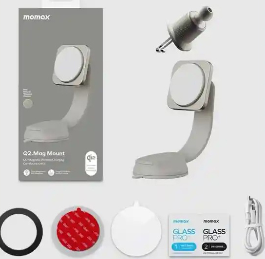 هولدر مگنتی و شارژر وایرلس ۱۵ وات مومکس مدل Q2 | نگهدارنده و شارژ همزمان در خودرو