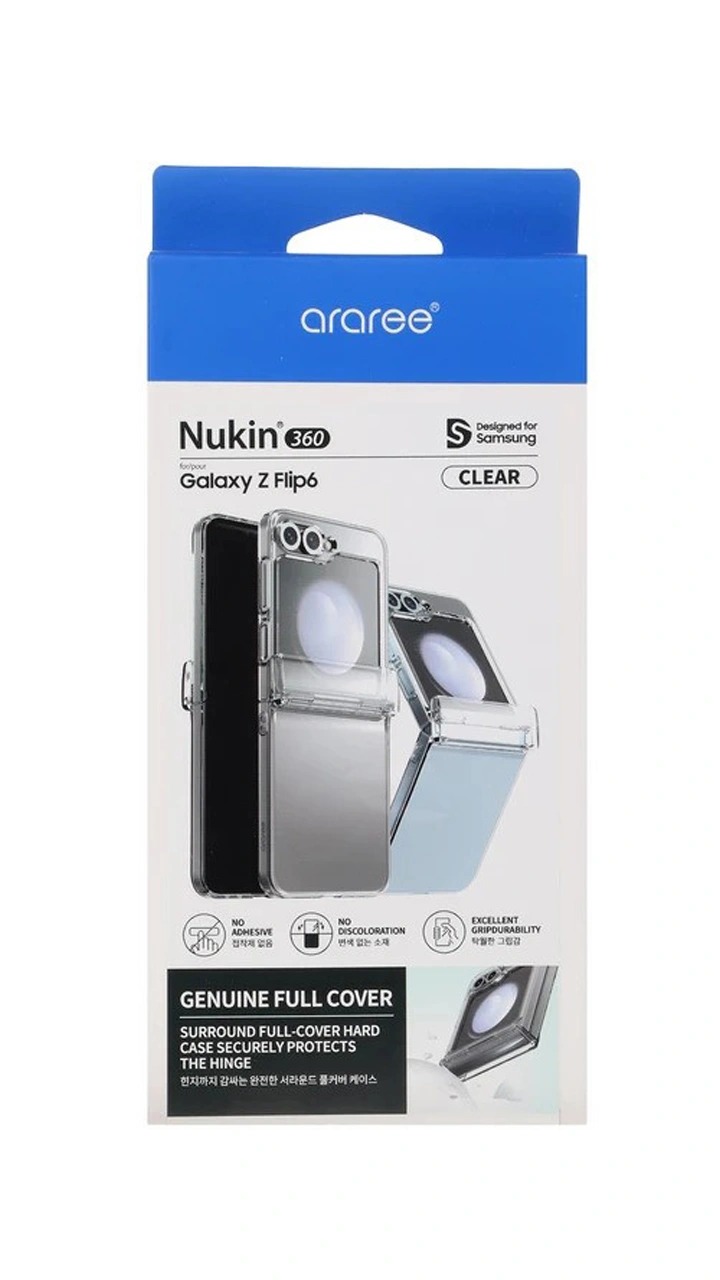 قاب Araree Nukin 360 یکی از بهترین انتخابها برای افرادی است که بهدنبال قابی شفاف، محافظتکننده و کاملاً منطبق با طراحی خاص گوشی Galaxy Z Flip 6 هستند. این قاب با پوشش 360 درجهای خود، از هر دو بخش تاشوی گوشی محافظت کرده و با حفظ زیبایی دستگاه، ایمنی بالا را فراهم میکند.