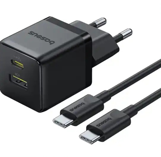 آداپتور شارژ دو پورت ۳۰ وات همراه با کابل بیسوس مدل