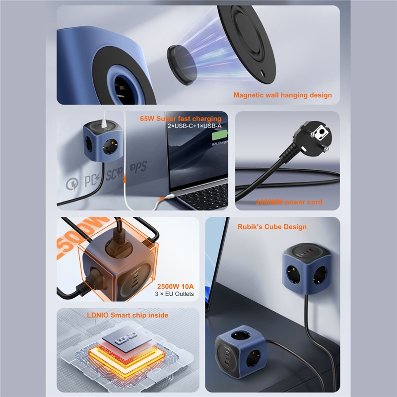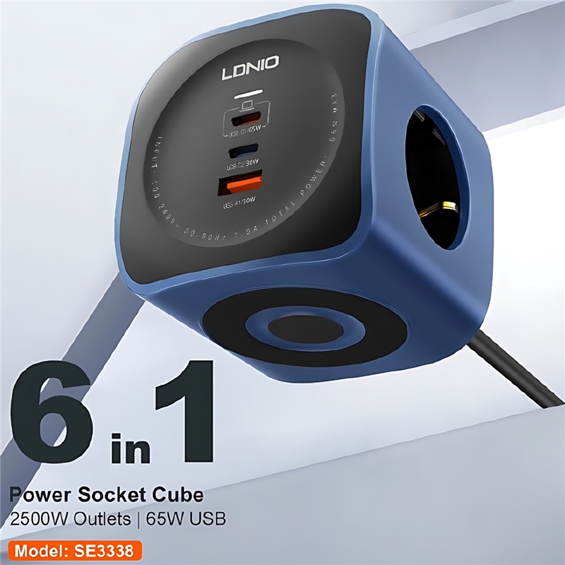چند راهی برق 6 کاره الدینیو Ldnio Power Socket Cube SE3338