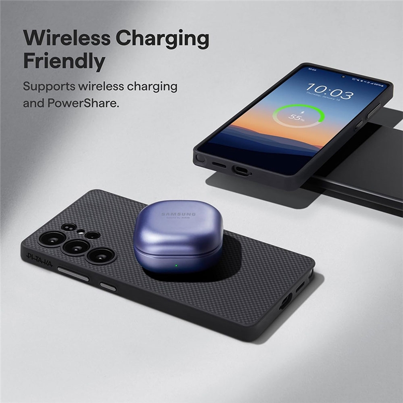 طراحی دقیق این قاب بهگونهایست که بدون ایجاد مزاحمت، با شارژرهای بیسیم و پایههای مغناطیسی سامسونگ سازگاری کامل دارد.