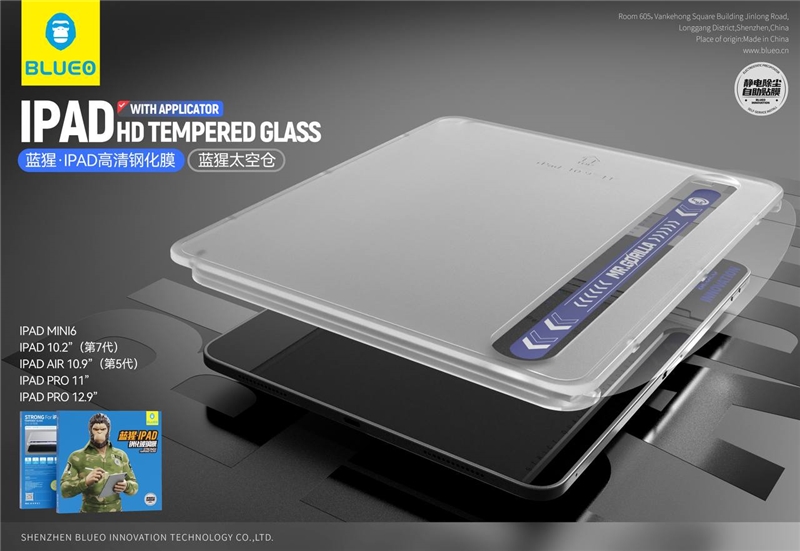 محافظ صفحه آیپد برند بلوئو Blueo مدل Strong Tempered Glass بهمراه ابزار نصب آسان