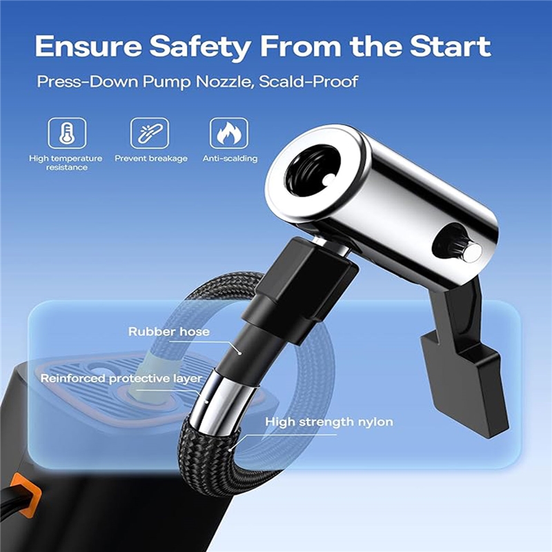 با فشار خروجی بالا و عملکرد دقیق، در کمتر از چند دقیقه لاستیک خودرو را بهراحتی باد میکند.
