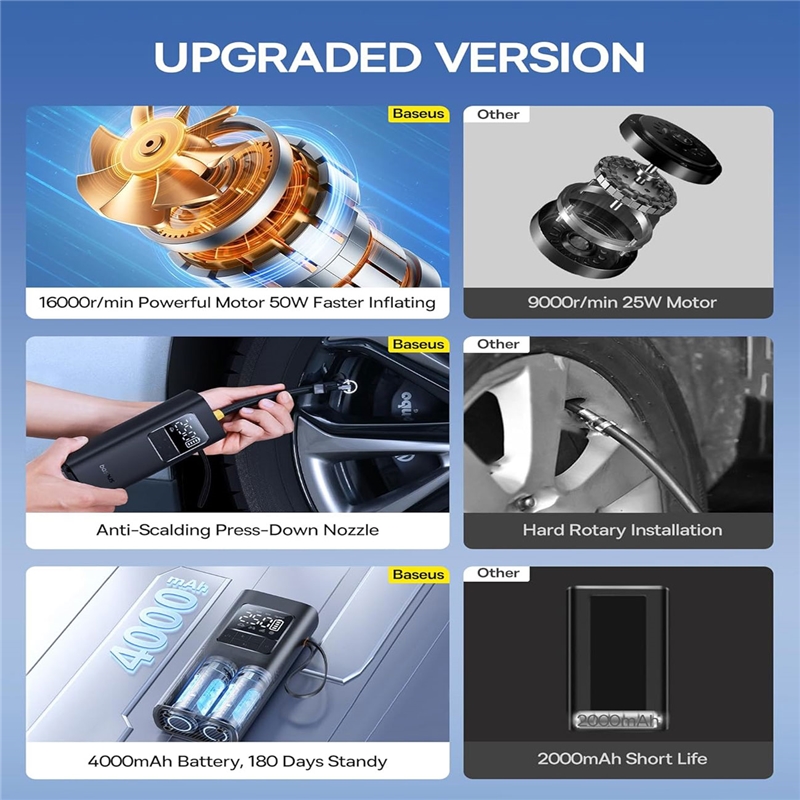 پمپ باد چندکاره بیسوس مدل Baseus Car Tire Inflator Pumper VA1 (BS-CG034) یک ابزار کاربردی و ضروری برای تمام رانندگان است. این دستگاه با طراحی جمعوجور و قابلیتهای ترکیبی، هم نقش پمپ باد دیجیتال قدرتمند را ایفا میکند و هم به عنوان چراغ قوه اضطراری در شب یا مواقع بحرانی به کمکتان میآید.