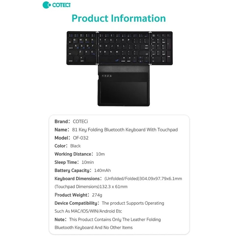 ✅ ویژگیهای کلیدی کیبورد تاشو COTECI OF-032: