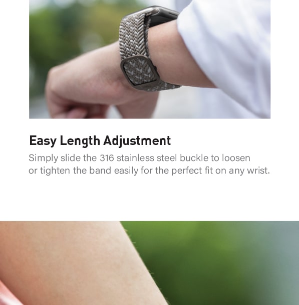 این بند زیبا از پلی استر بسیار با کیفیت ساخته شده است که کاملا ضد حساسیت می باشد . همچنین ضد آب و ضد تعریق بوده و با داشتن یک سگک استیل قابلیت تنظیم بر اساس سایز مچ دست را دارد و اگر به مرور زمان کمی شل شود می توانید با کمک همین سگک آن را تنظیم کنید و این نکته مثبت این بند از برند یونیک نسبت به مدل های مشابه از سایر برند ها می باشد .