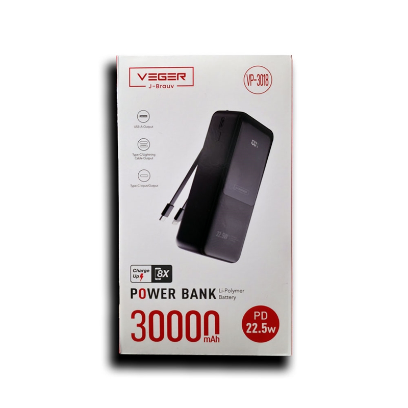 🔋 پاوربانک VEGER J-Brauv مدل VP-3018 ظرفیت 30000 میلیآمپر