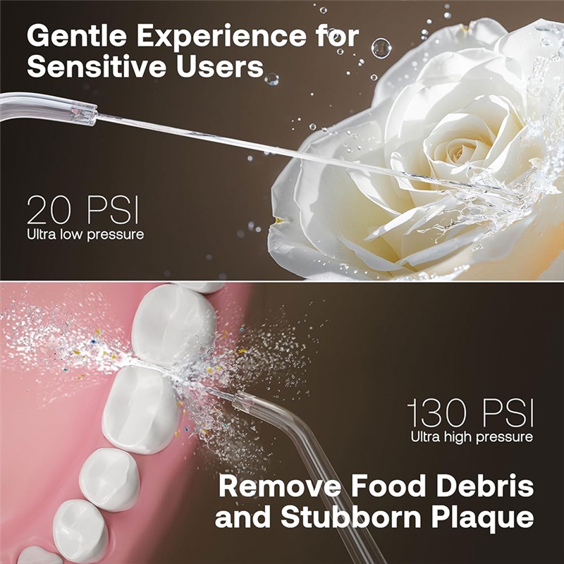 دستگاه واترجت Bitvae C6 مجهز به تنظیمات مختلف فشار آب است که به شما اجازه میدهد شدت جریان آب را متناسب با نیاز دهان و لثه خود انتخاب کنید. این ویژگی مخصوصاً برای افرادی که لثههای حساس دارند بسیار کاربردی است.