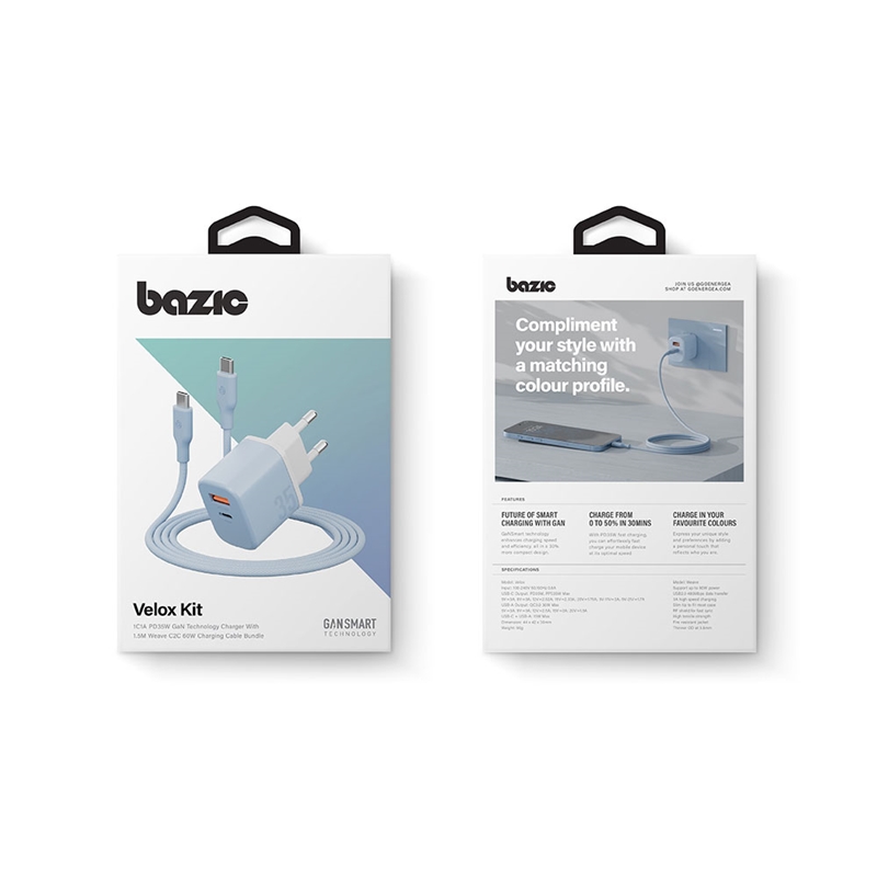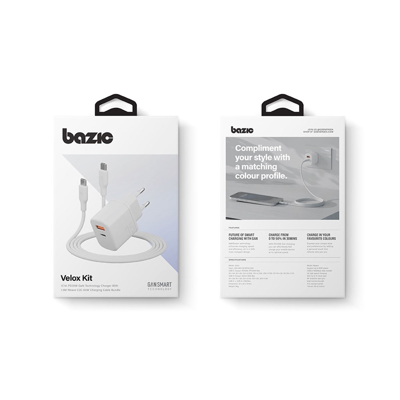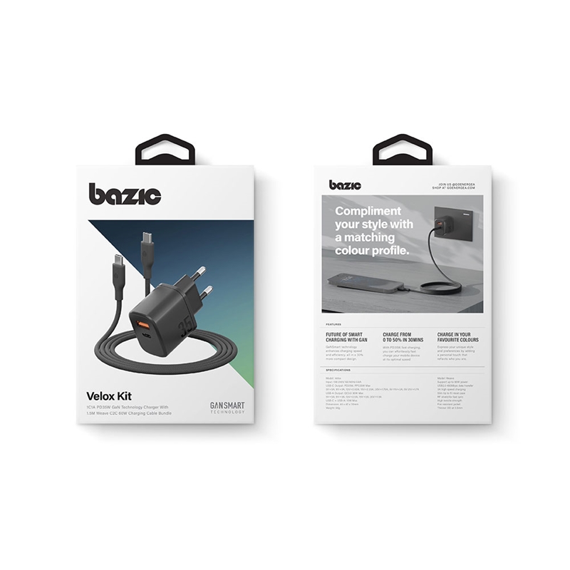 با این ست شارژر Bazic Velox Bundle EU، شما یک راهحل سریع، امن و قابلاعتماد برای شارژ روزانه خود خواهید داشت.